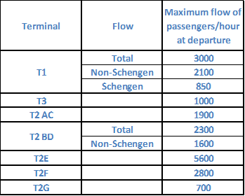 Limit of the departure passenger flow at Paris Charles de Gaulle Airport per hour and per terminal :