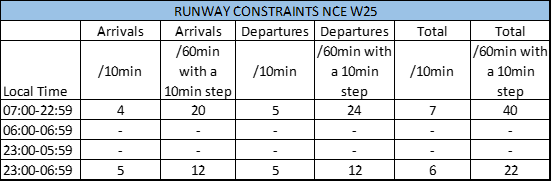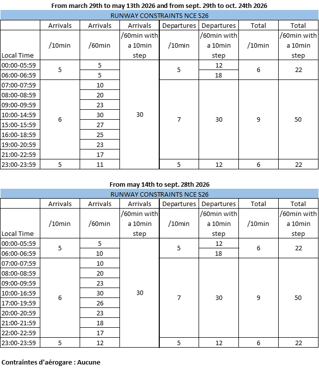Temporary runway scheduling limits : Whole season except from 19 December 2025 to 05 January 2026 and from 07 to16 March 2026