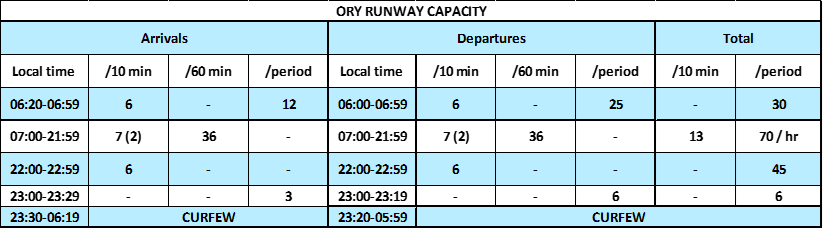 The decree of 29 September 2022, modifying the decree of 19 October 1999, defines the runway capacity at Paris-Orly Airport: